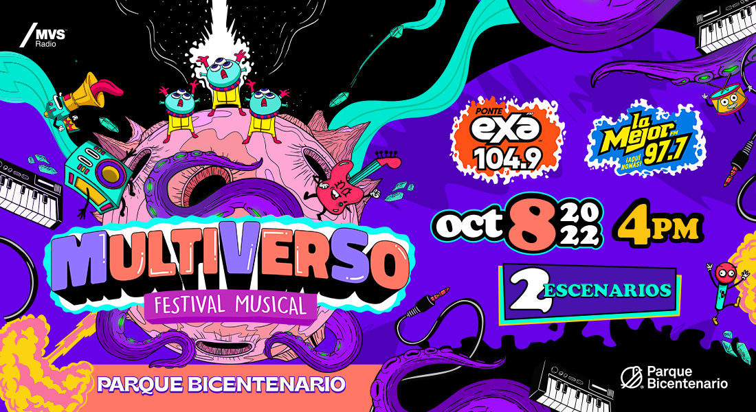Las estaciones más importantes de México Exa Fm y La Mejor se unen para darle vida a un evento sin precedentes en la radio de nuestro país. El próximo 8 de octubre el Parque Bicentenario de la CDMX recibirá al “Multiverso Festival Musical”.