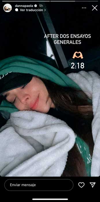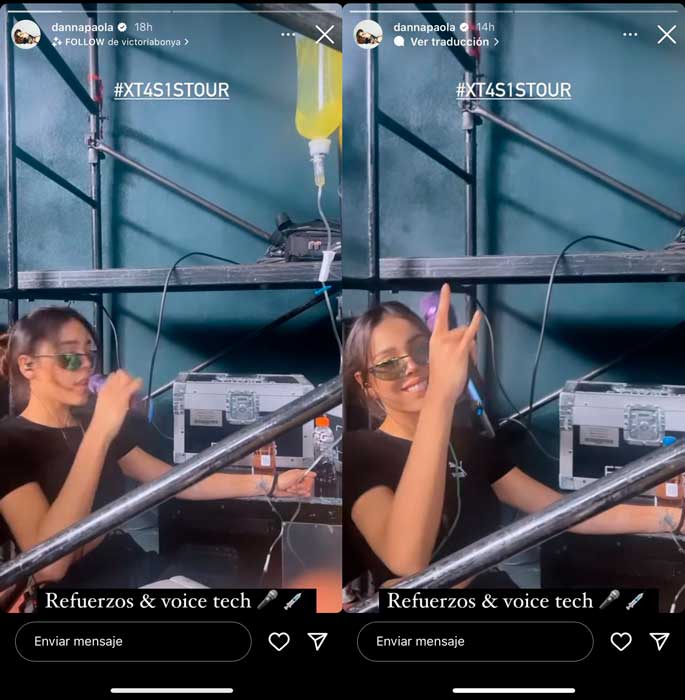 Respecto a la imagen en la que se observa canalizada, la cantante compartió otra imagen en la que se ve recostada y haciendo incapié que está agotada por los ensayos, lo que nos deja ver que fue una medida preventiva ante el agotamiento que puede presentar.