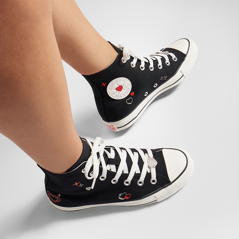 ¿Eres fanático de las botas? ¡No te preocupes! La colección también ofrece dos variantes de las botas Chuck Taylor All Star, en negro y rojo, adornadas con corazones que te harán lucir a la moda incluso en los días más fríos.