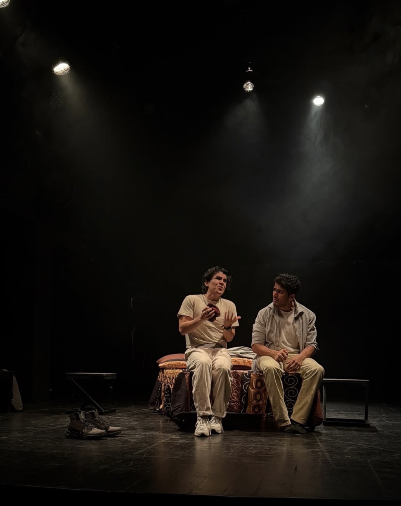 La puesta en escena, producida por Mancilladas Teatro, cuenta con las actuaciones de Diego Alfa y Marco Celis, música original de José David Pérez Sánchez, escenografía de Mar Serna y Majo Miselem. Cada elemento crea una atmósfera envolvente, donde el público no solo observa: siente, recuerda, se cuestiona.